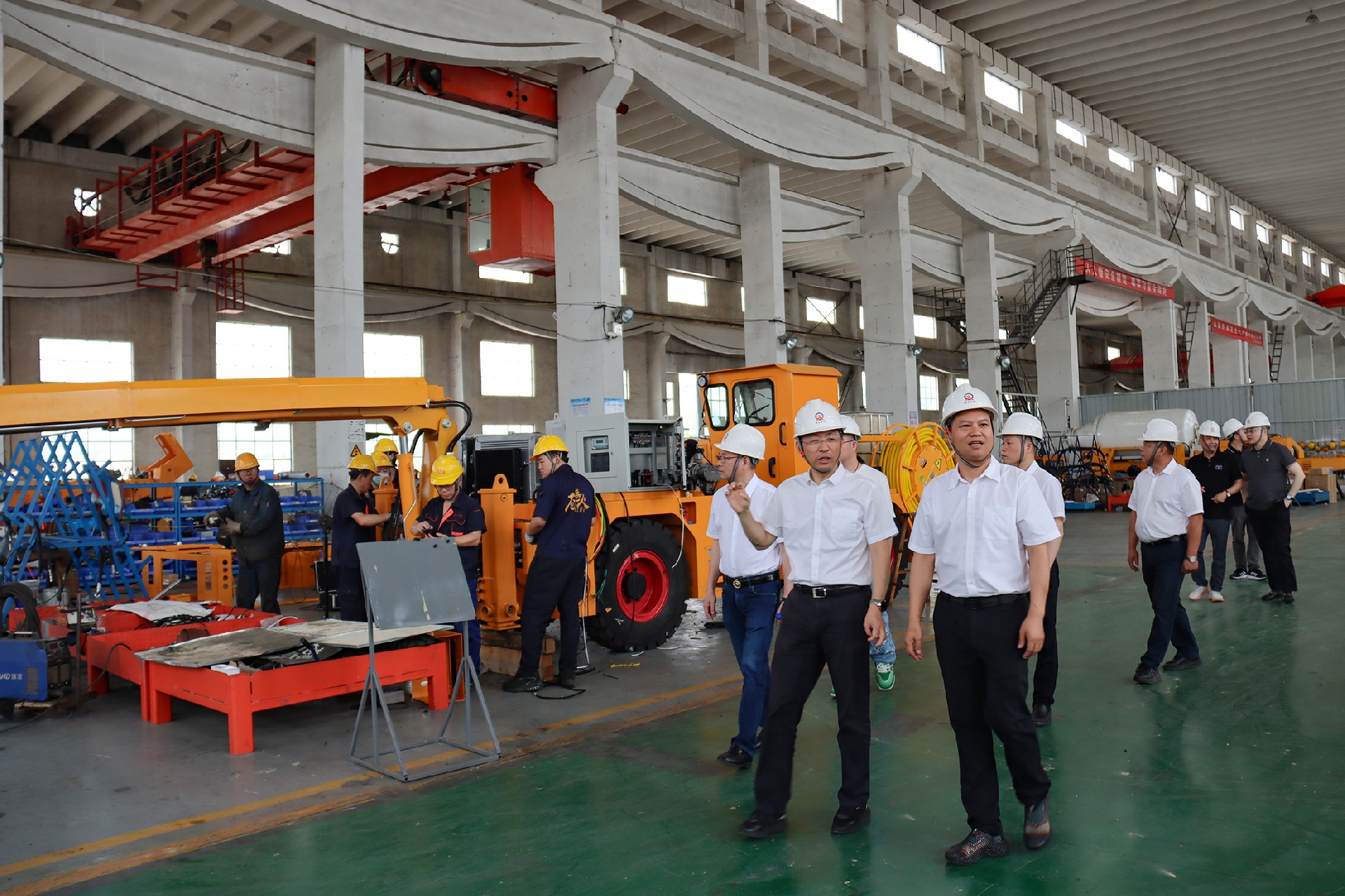 考察中,企业创始人吴加旭董事长深情回顾创业历程。他介绍道,正是怀揣振兴民族装备的初心,通过成功整合原国有矿山机械领域顶尖研发团队,率先实现核心部件国产化突破,彻底扭转了无轨矿山设备长期依赖进口的被动局面。凭借持续创新与深厚技术积累,公司已成长为省级高新技术企业、专精特新企业,成为行业自主化标杆