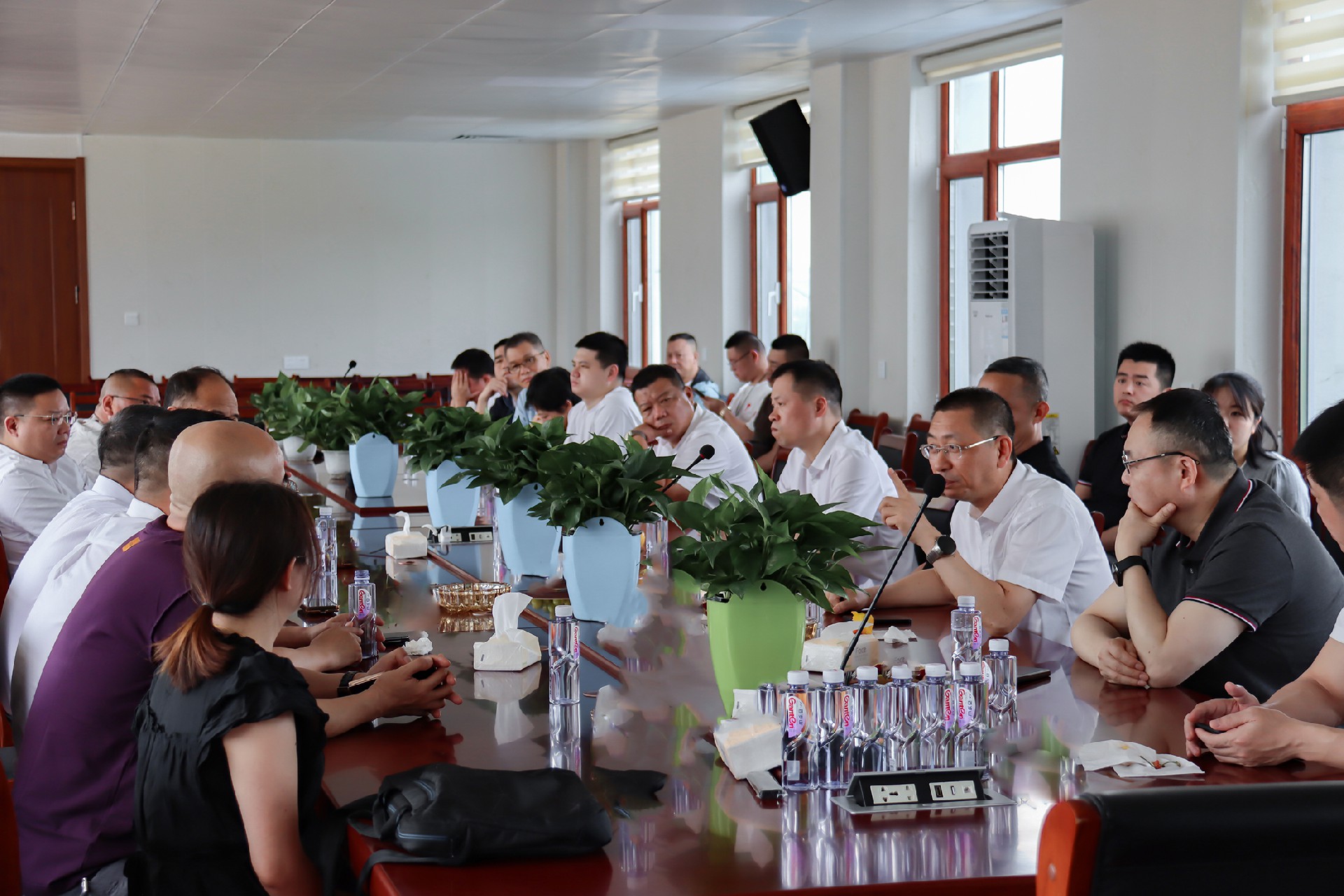 总经理陈辞向考察团一行汇报了公司亮眼的经营业绩,并详细阐述了未来三年的战略规划。陈总表示,公司将依托现有技术优势和坚实的市场基础,在产能扩张、技术研发及市场开拓上持续发力,向更高发展目标迈进。